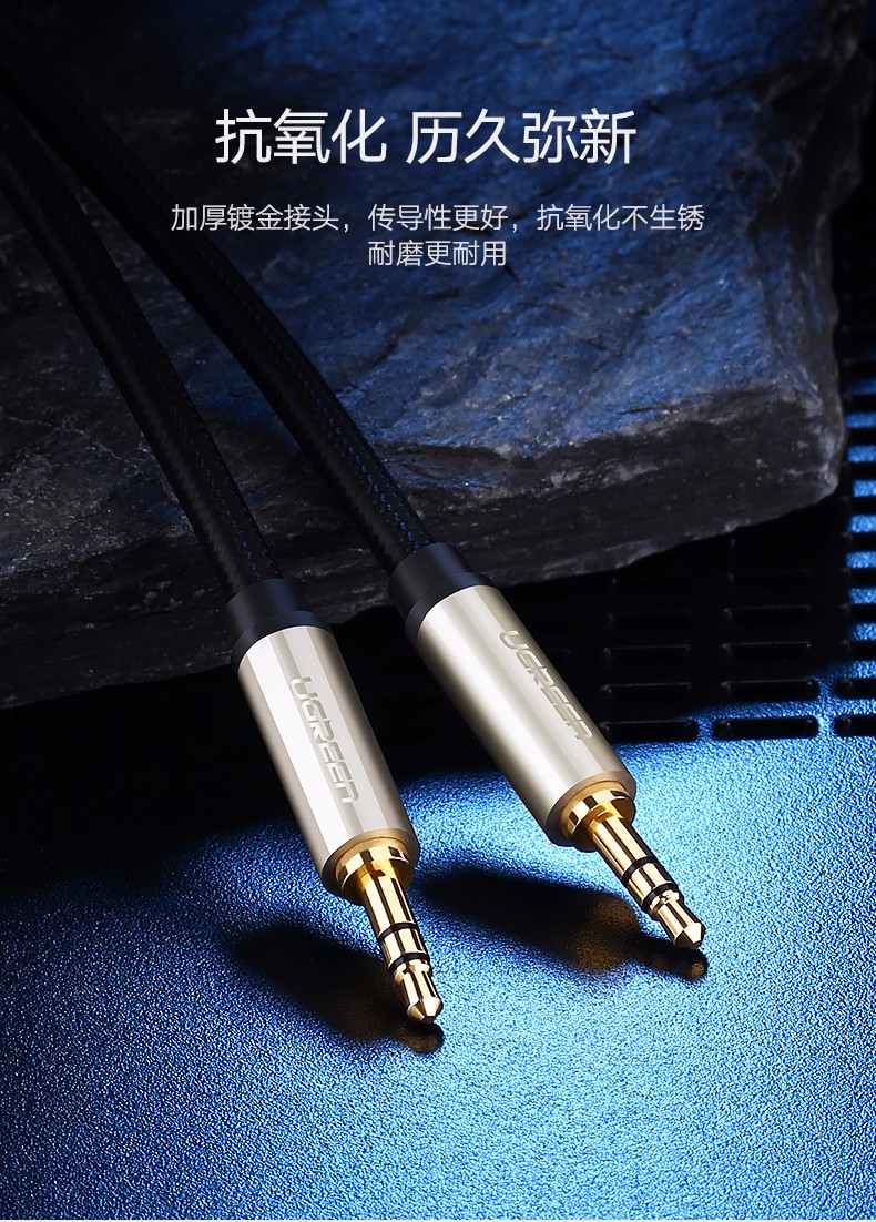 綠聯(lián) AV125 鍍銀AUX車用音頻線 3.5mm 公對公車載連接轉(zhuǎn)換線 專業(yè)發(fā)燒級AUX音頻線 1米 黑色 單位:根