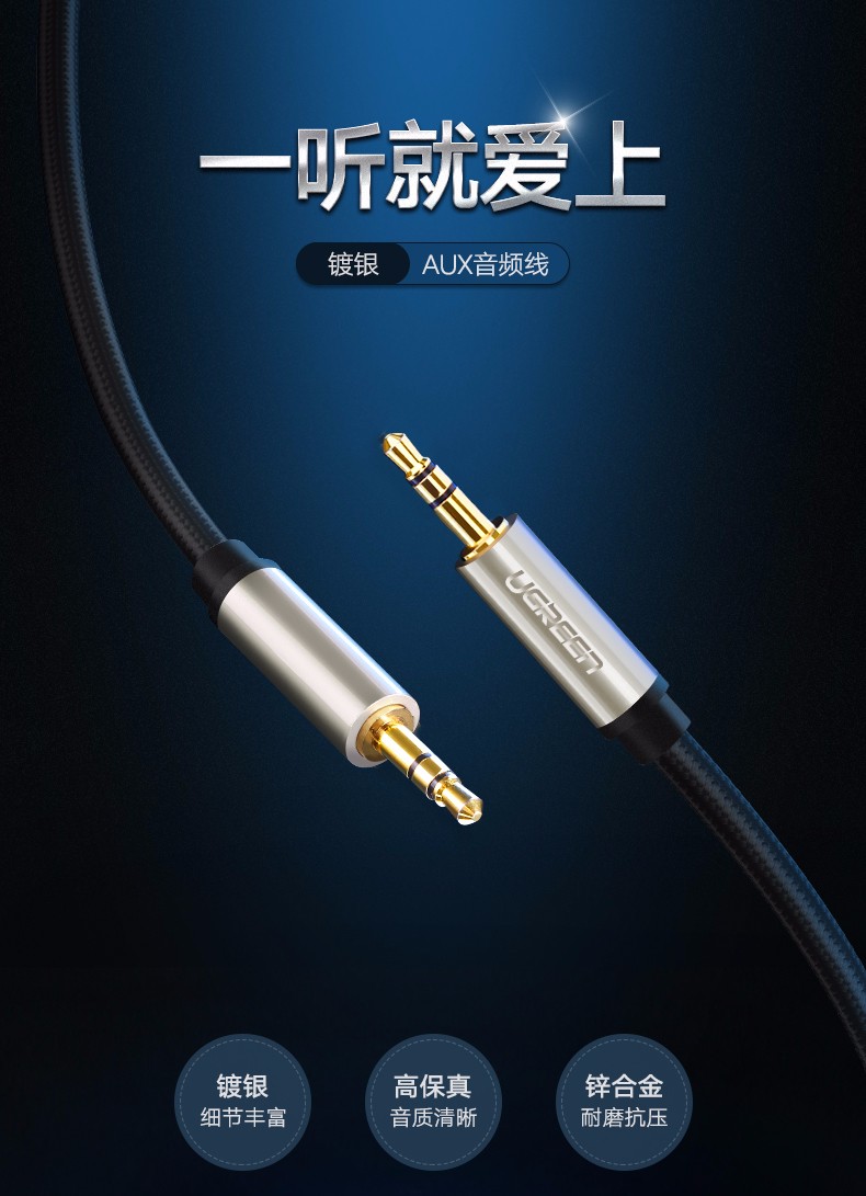 綠聯(lián) AV125 鍍銀AUX車用音頻線 3.5mm 公對公車載連接轉(zhuǎn)換線 專業(yè)發(fā)燒級AUX音頻線 2米 黑色 單位:根