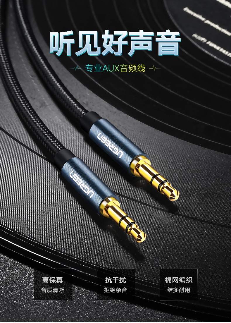 綠聯(lián) AV112 車載AUX音頻線 3.5mm 公對(duì)公車載耳機(jī)連接線 直對(duì)直 1米 藍(lán)色 單位:根