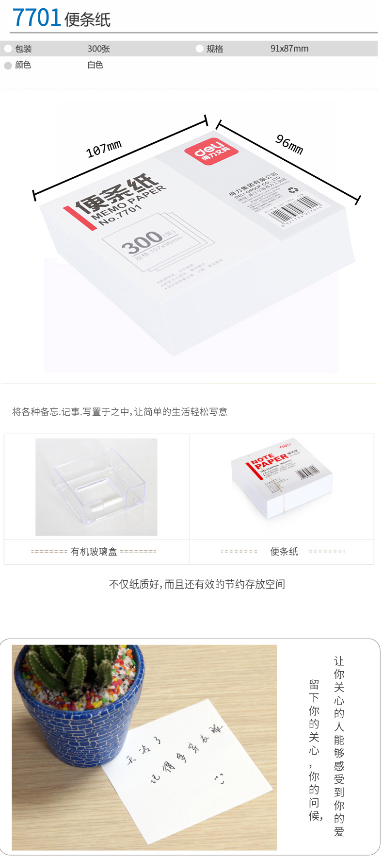 得力便利貼 7601 便簽紙/便簽本/便利貼 107×96mm 單位:盒
