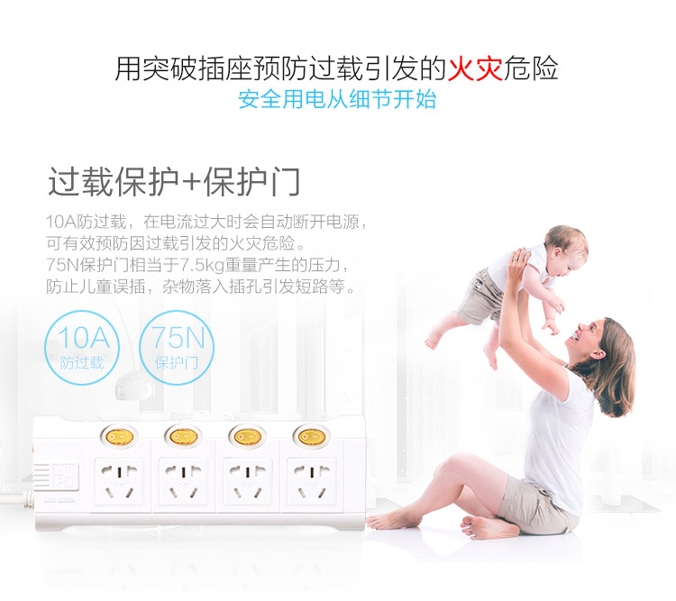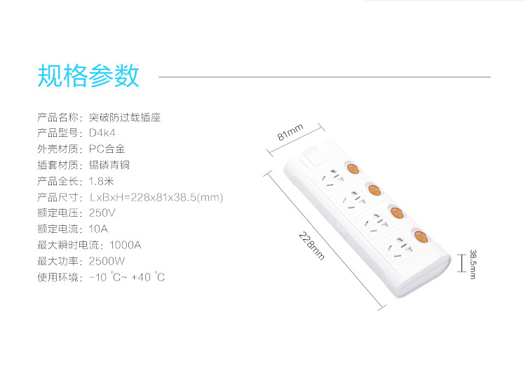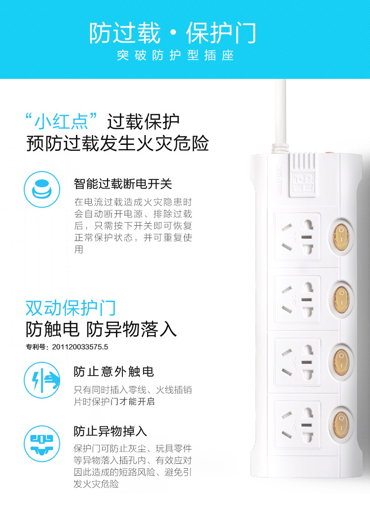 突破插座 TZ-D4K4 3米4開4位插線板 單位:個(gè)