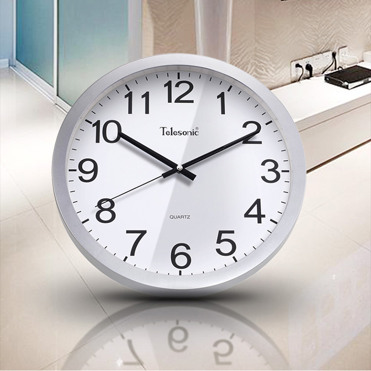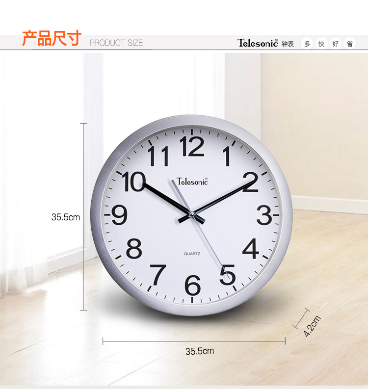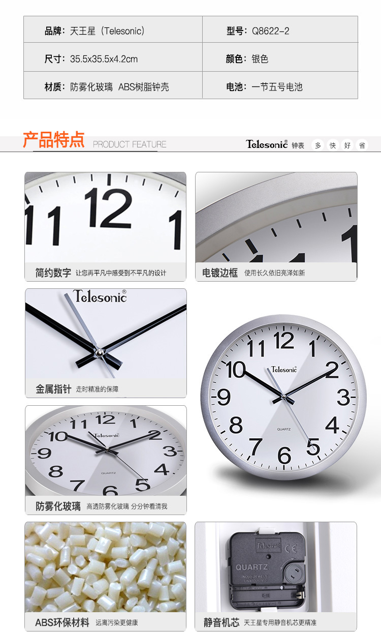 天王星 靜音時鐘創(chuàng)意簡約石英鐘14英寸 Q8622-2 銀 單位:個