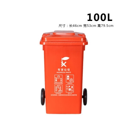 ABEPC 100L帶輪 紅色 有害垃圾桶 物業(yè)環(huán)衛(wèi)垃圾分類商用帶蓋分類垃圾桶果皮箱 單個裝