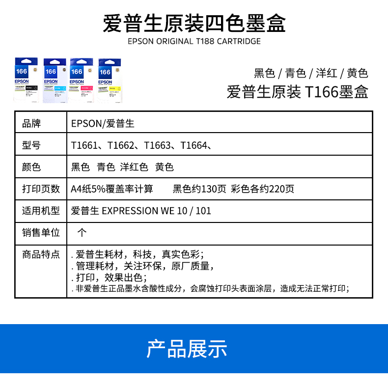 愛普生墨盒 T1664 黃色墨盒 適用于ME 10/ME 101 單位:支