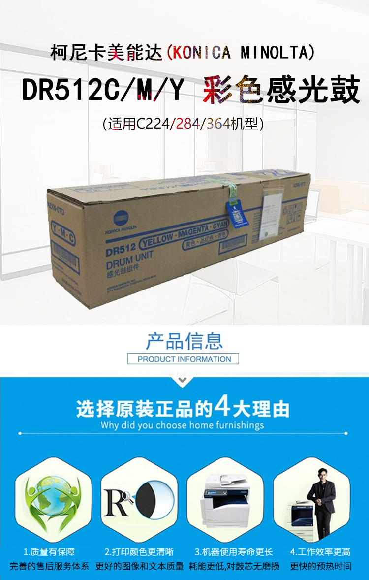 柯尼卡美能達(dá) DR512Y 黃色感光鼓 適用C221/C224/C281/C284/C454/C554等機型 單位:支