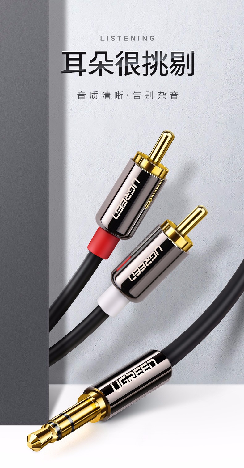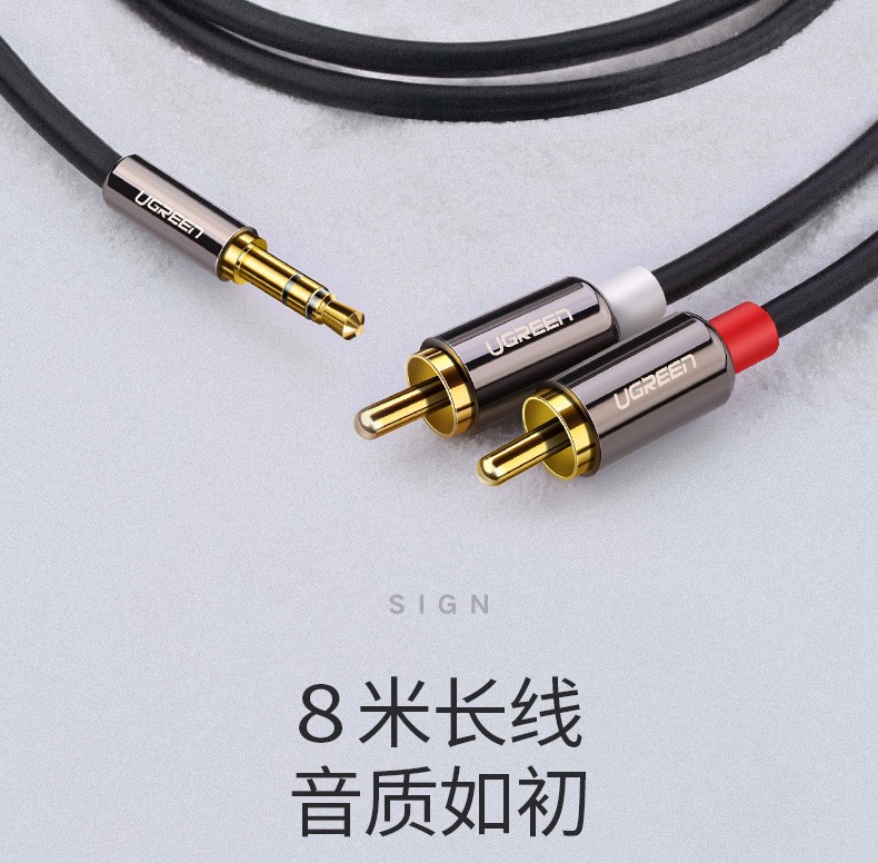 綠聯(lián) AV116 3.5mm音頻線一分二 3.5轉(zhuǎn)雙蓮花頭2RCA紅白公對(duì)公連接線 8米 黑色 單位:根
