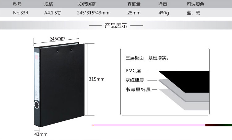 齊心(Comix) NO.334 紙板文件夾 資料夾 長押夾A4 藍(lán)色 單個裝