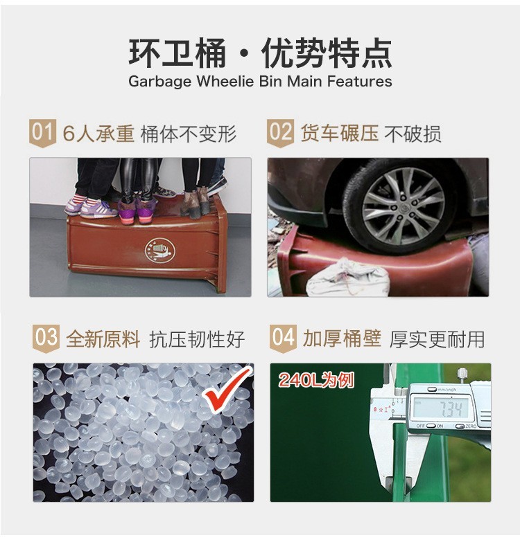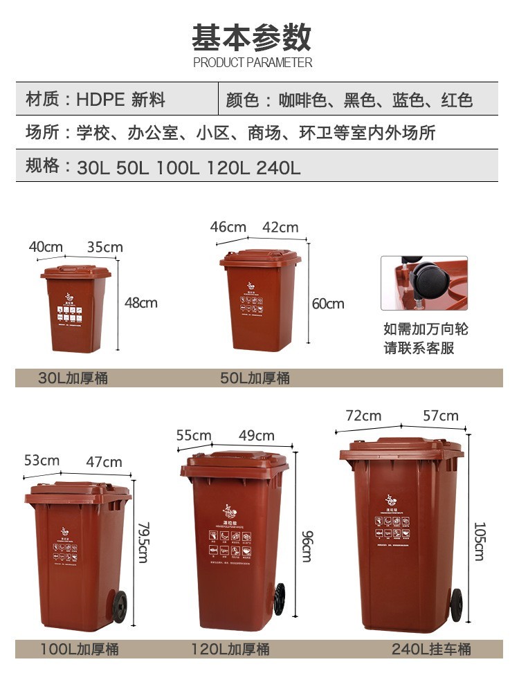 納麗雅 240L帶輪 藍(lán)色 可回收垃圾桶 物業(yè)環(huán)衛(wèi)垃圾分類商用帶蓋分類垃圾桶果皮箱 單個(gè)裝