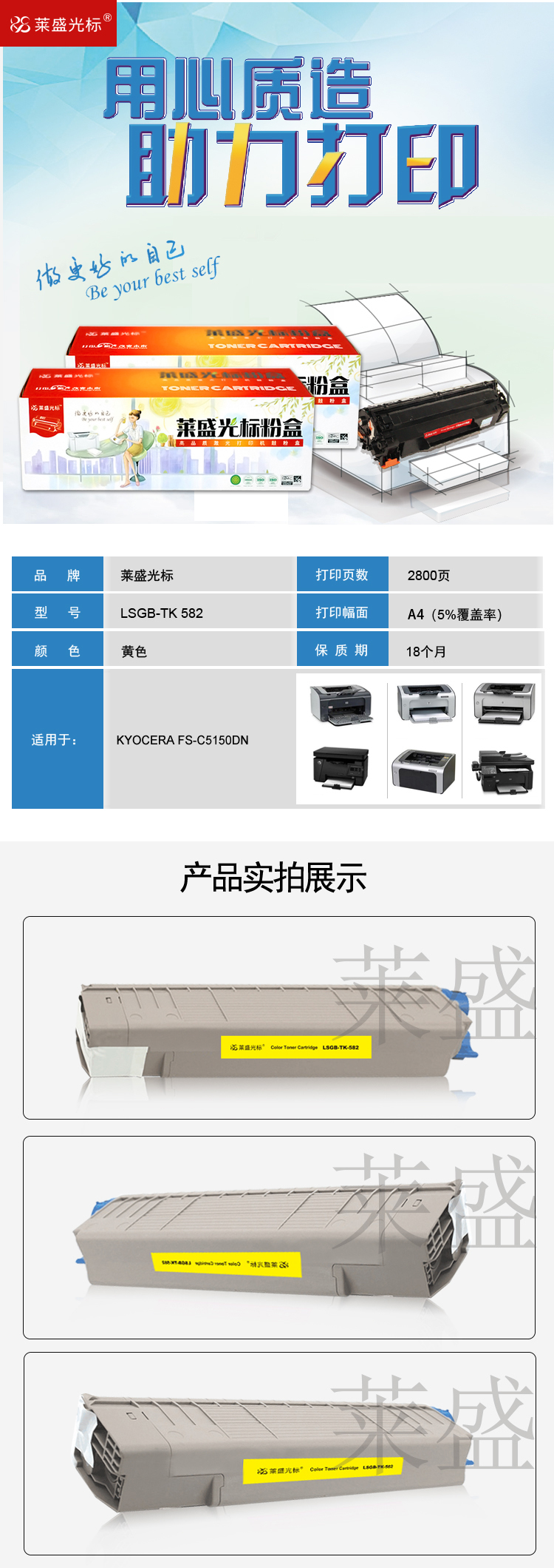 萊盛光標(biāo) LSGB-TK-582 黃色粉盒 適用:KYOCERA FS-C5150DN 單位:支
