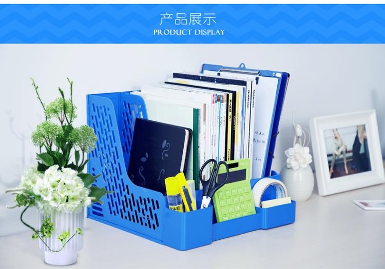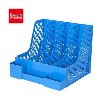 齊心資料架 B2034 加厚帶筆筒 四聯(lián)文件架 藍(lán)色 單位:個(gè)