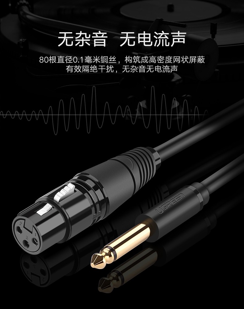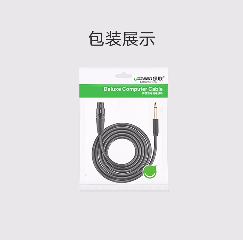 綠聯(lián) AV131 6.5mm轉卡農公對母話筒音頻線 6.35卡儂口XLR平衡線 麥克風調音臺音響箱功放連接線 5米 黑色 單位:根