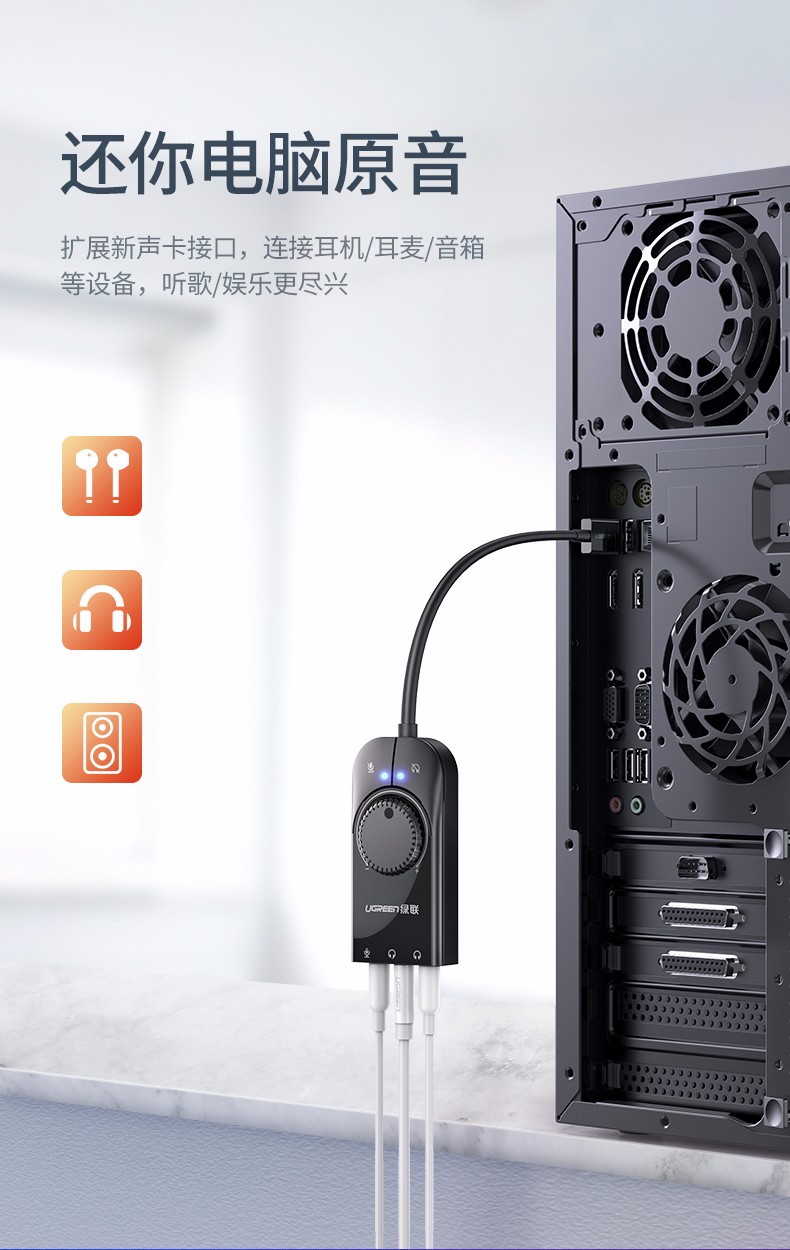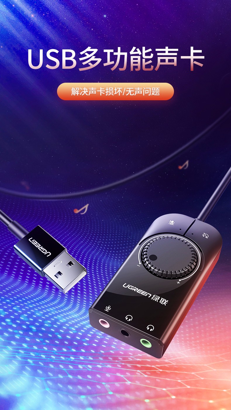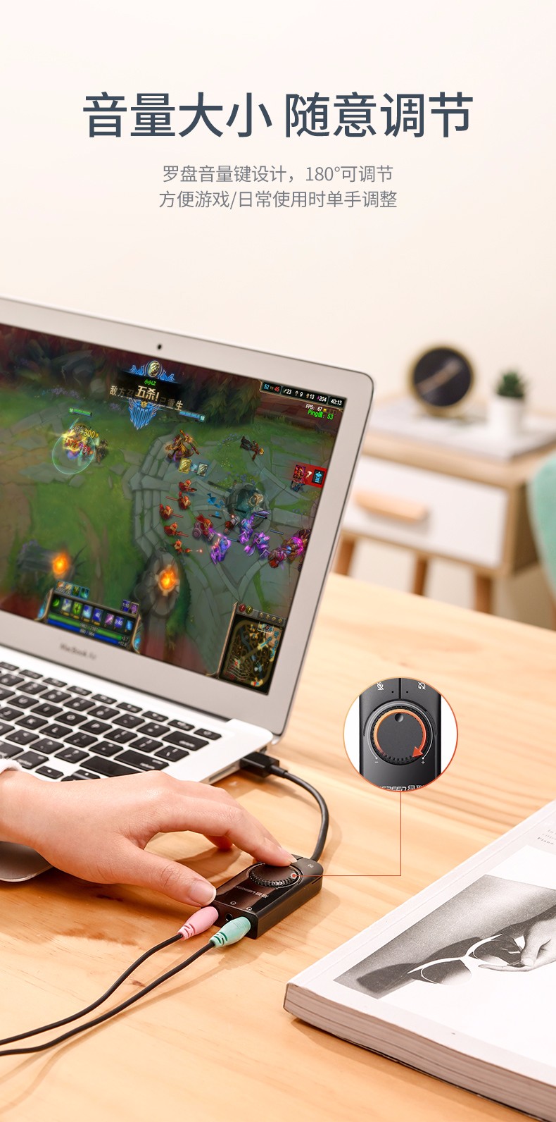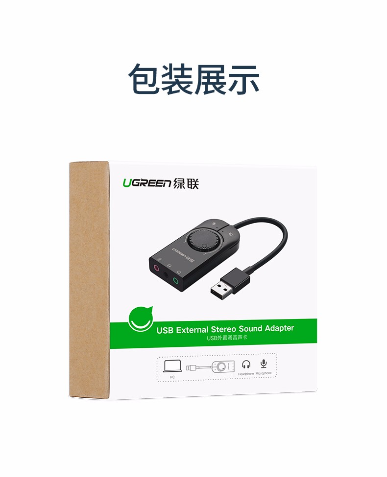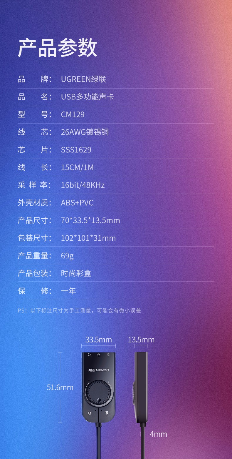綠聯(lián) CM129 USB外置聲卡支持筆記本電腦臺式機PS4獨立聲卡 1米 黑色 單位:個