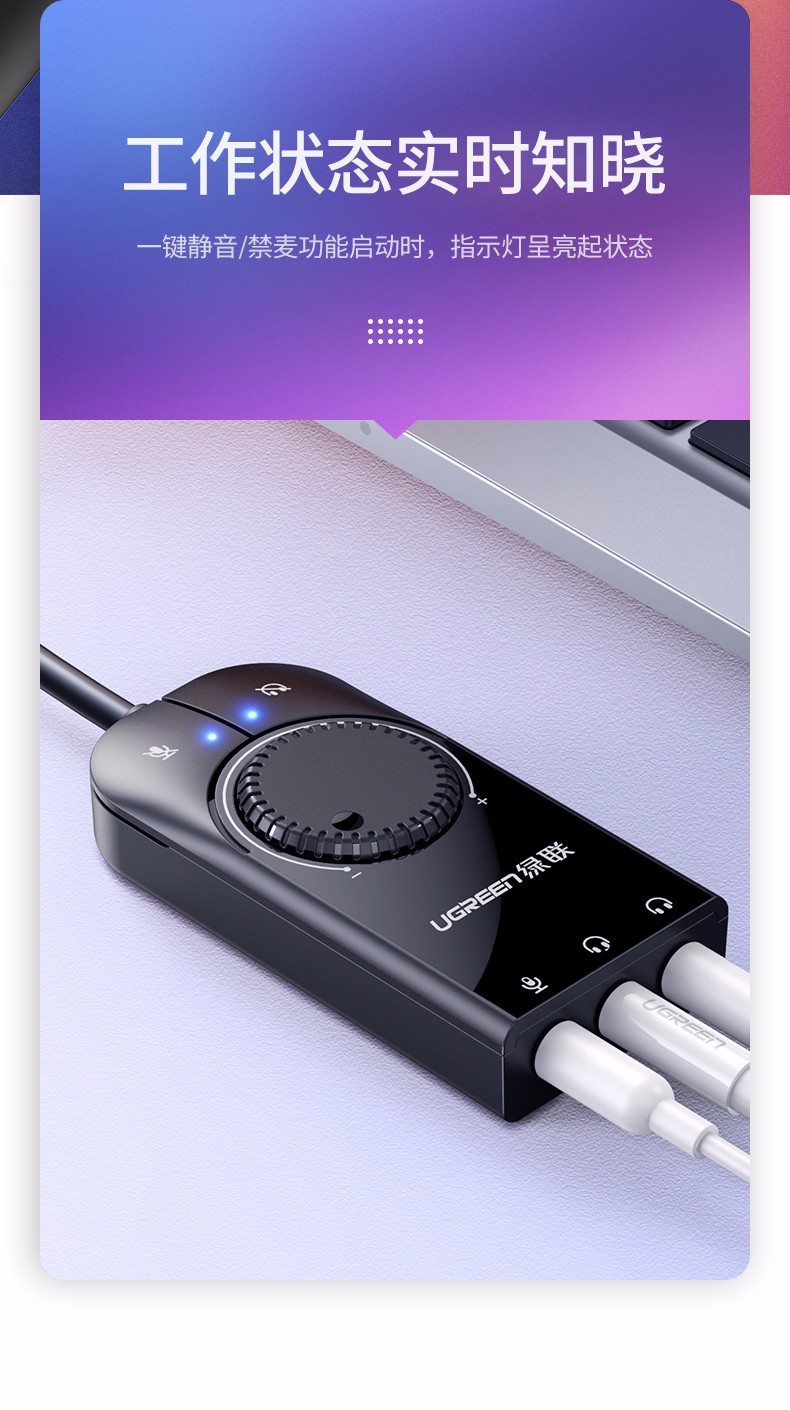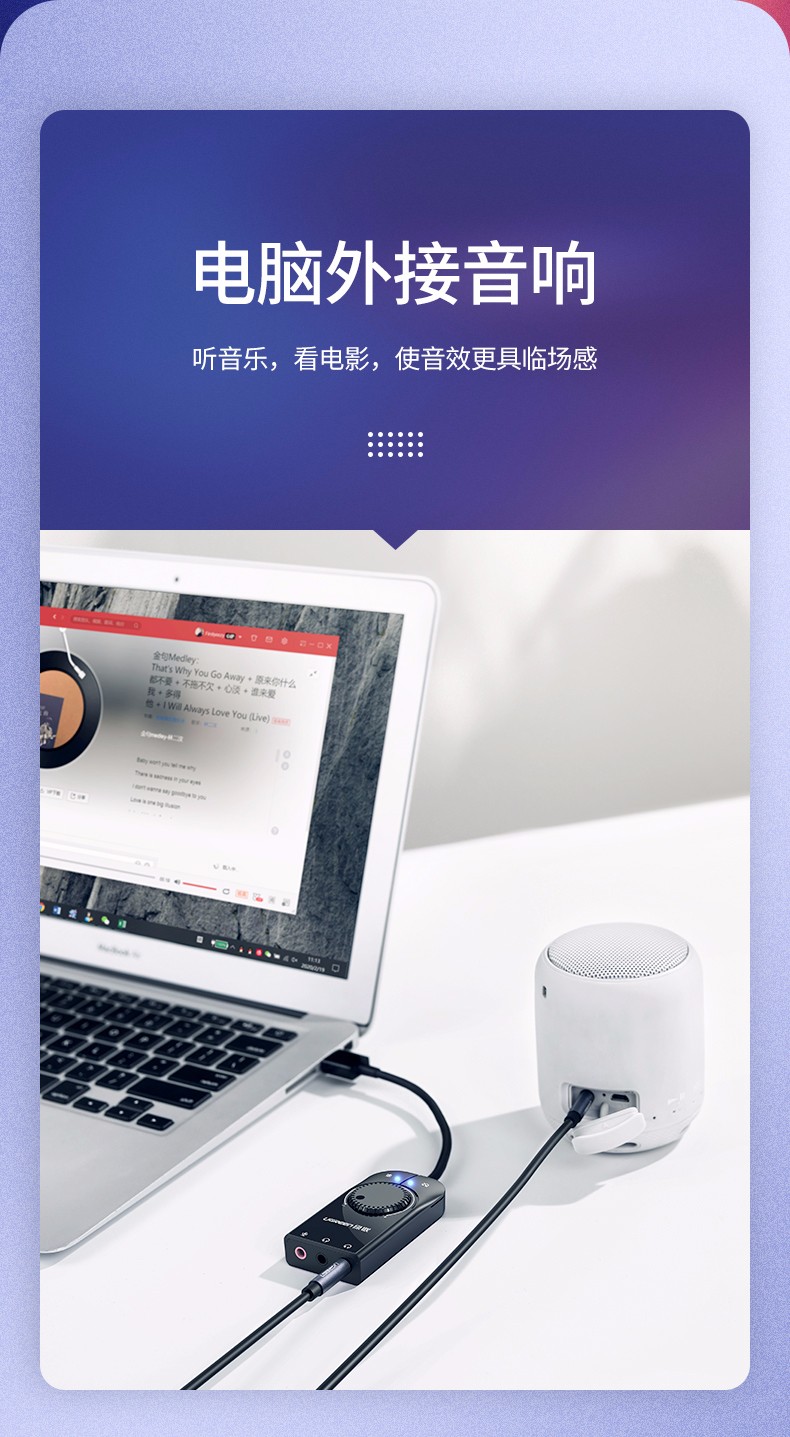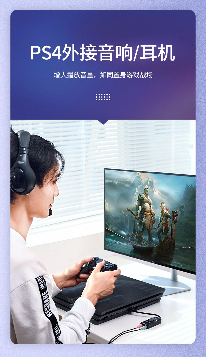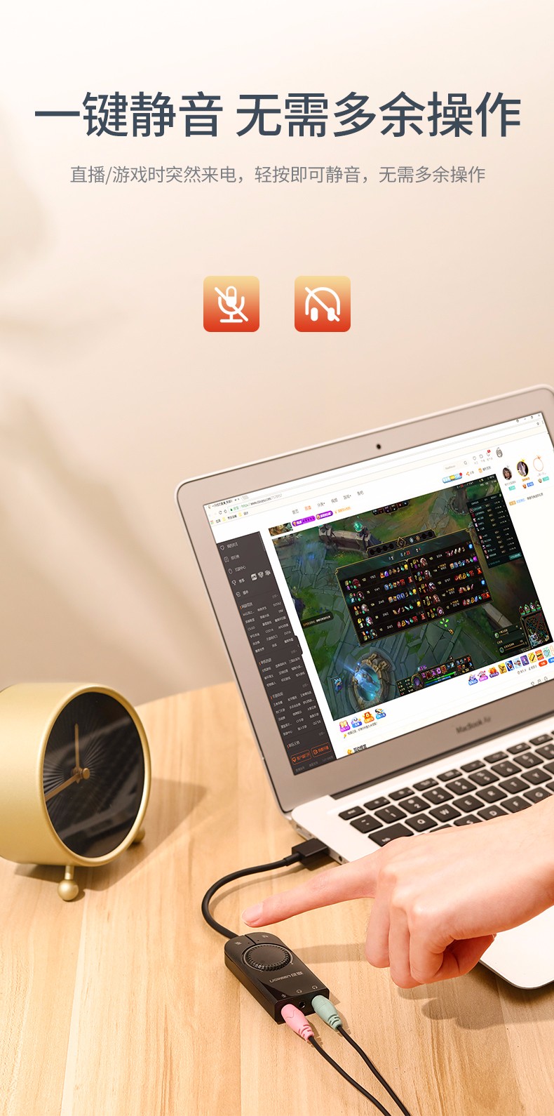 綠聯(lián) CM129 USB外置聲卡支持筆記本電腦臺式機PS4獨立聲卡 1米 黑色 單位:個