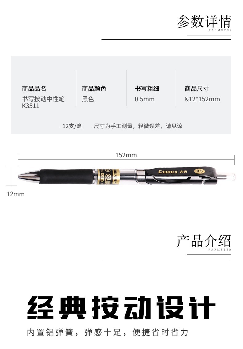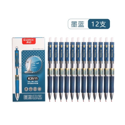 齊心 K3511 0.5mm 按動(dòng)中性筆簽字筆 藍(lán)黑色 12支/盒
