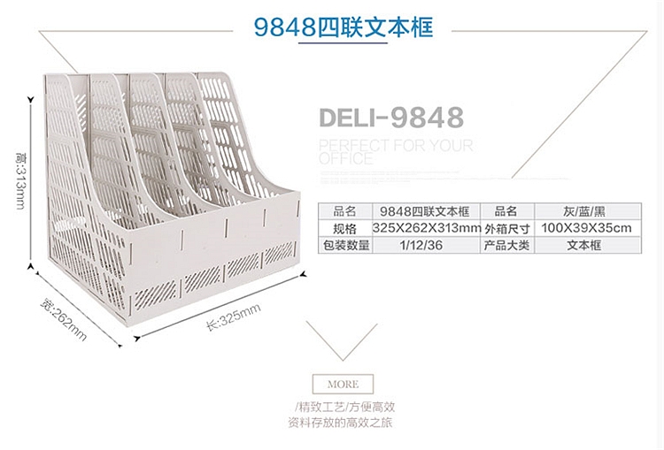 得力資料架 9848 四聯(lián)鏤空桌面文件框 灰色 單位:個