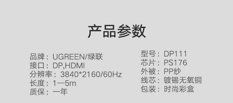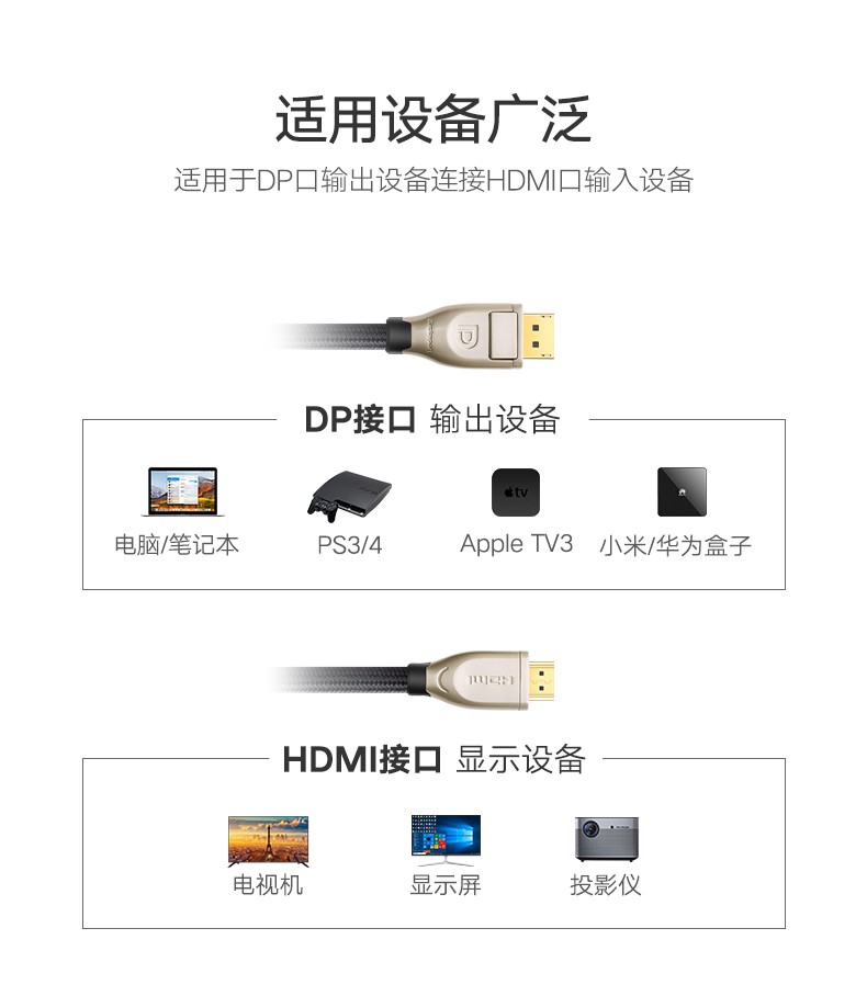 綠聯(lián) DP111 DP轉(zhuǎn)hdmi轉(zhuǎn)換線公對(duì)公 4K/60Hz高清主動(dòng)式轉(zhuǎn)接線 筆記本電腦臺(tái)式機(jī)接電視顯示器視頻線 合金外殼 1.5米 單個(gè)裝