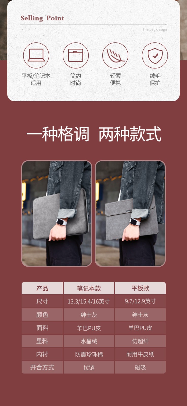 綠聯(lián) LP187 筆記本電腦包 平板保護(hù)套 內(nèi)膽包適用蘋果macbookpro小米air13聯(lián)想惠普華為電腦平板 平板收納包 灰色 12.9英寸 單個裝