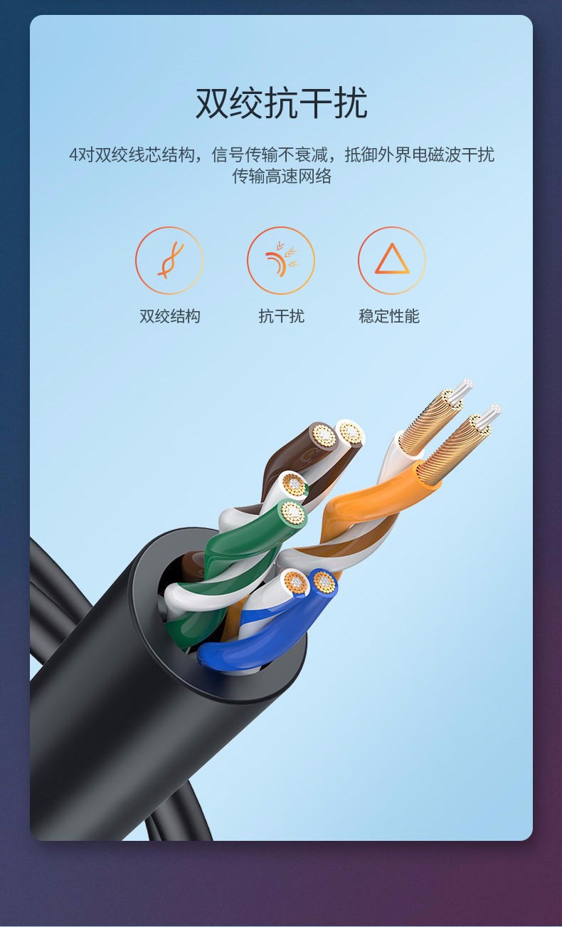 綠聯(lián) NW122 超六類萬兆網(wǎng)線細線 CAT6A類純銅鍍金八芯雙絞非屏蔽網(wǎng)絡(luò)跳線 家用電腦寬帶高速成品網(wǎng)絡(luò)連接線 8米 黑色 單個裝