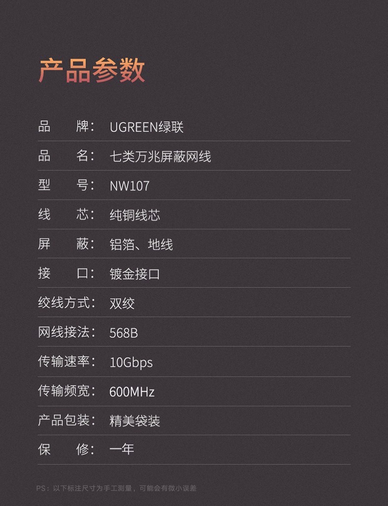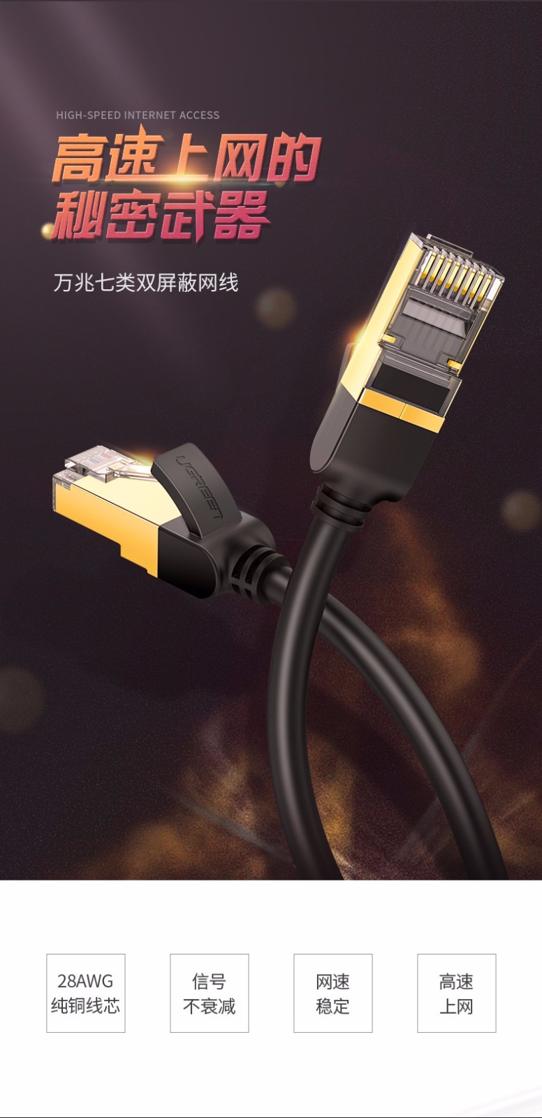 綠聯(lián) NW107 七類網(wǎng)線 工程級CAT7類八芯雙絞純銅鍍金雙屏蔽高速萬兆網(wǎng)絡(luò)跳線 電腦家用寬帶成品監(jiān)控連接線 七類圓形全銅網(wǎng)線 3米 黑色 單個裝