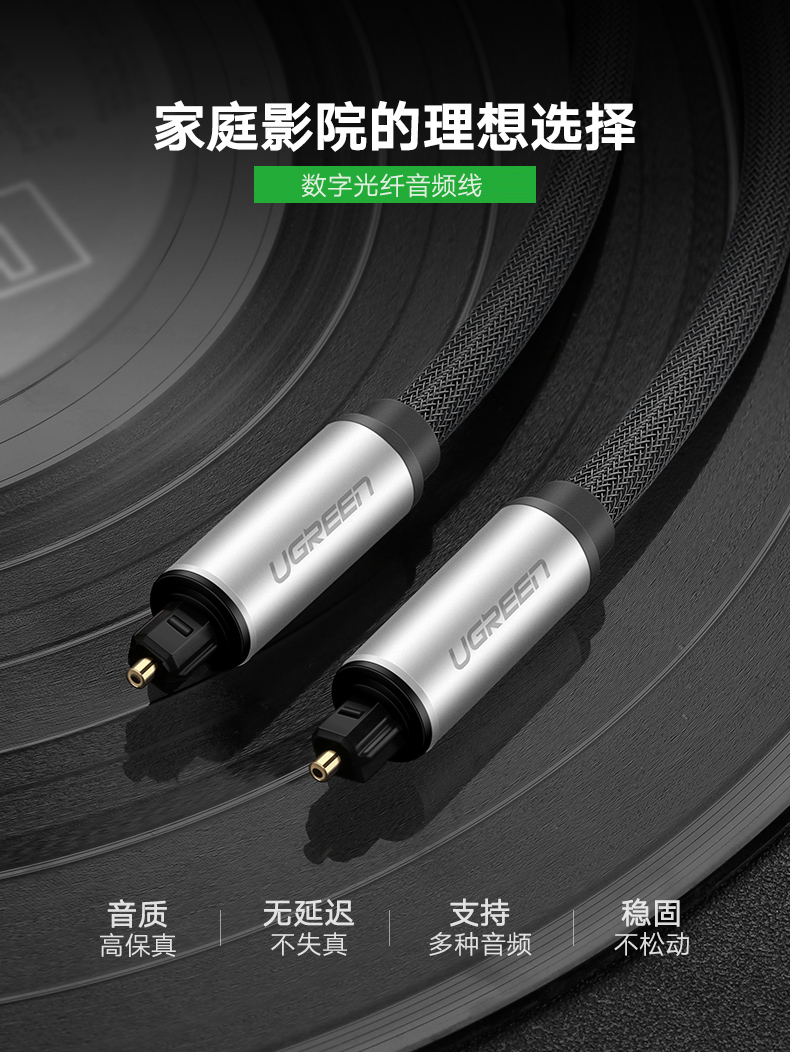 綠聯(lián) AV108 光纖音頻線SPDIF數(shù)字輸出適用小米電視音箱方頭對方口5.1聲道功放音響光纖連接線AV108 1.5米 黑色 單個(gè)裝