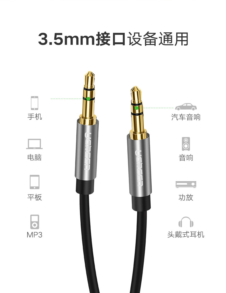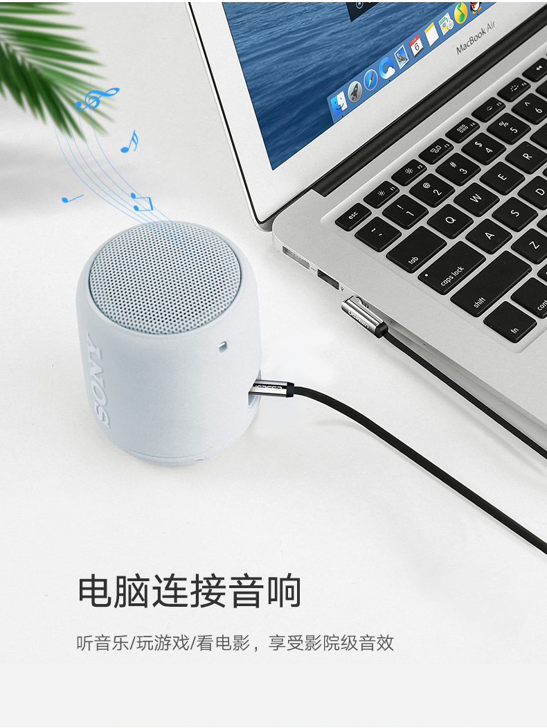 綠聯(lián) AV119 AUX車載音頻線 扁線 手機(jī)、MP3/4接音箱音頻線 黑色直頭對彎頭90度 5米 黑色 單個(gè)裝