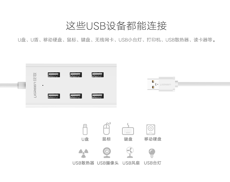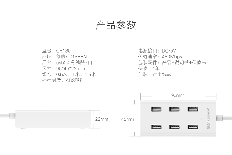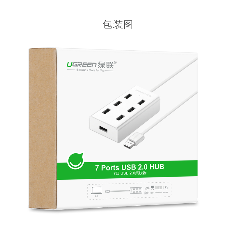 綠聯(lián) CR130 USB分線器 高速拓展7口2.0HUB集線器延長線 臺式機筆記本電腦擴展塢一拖七多接口轉換器 1米 黑色 單個裝