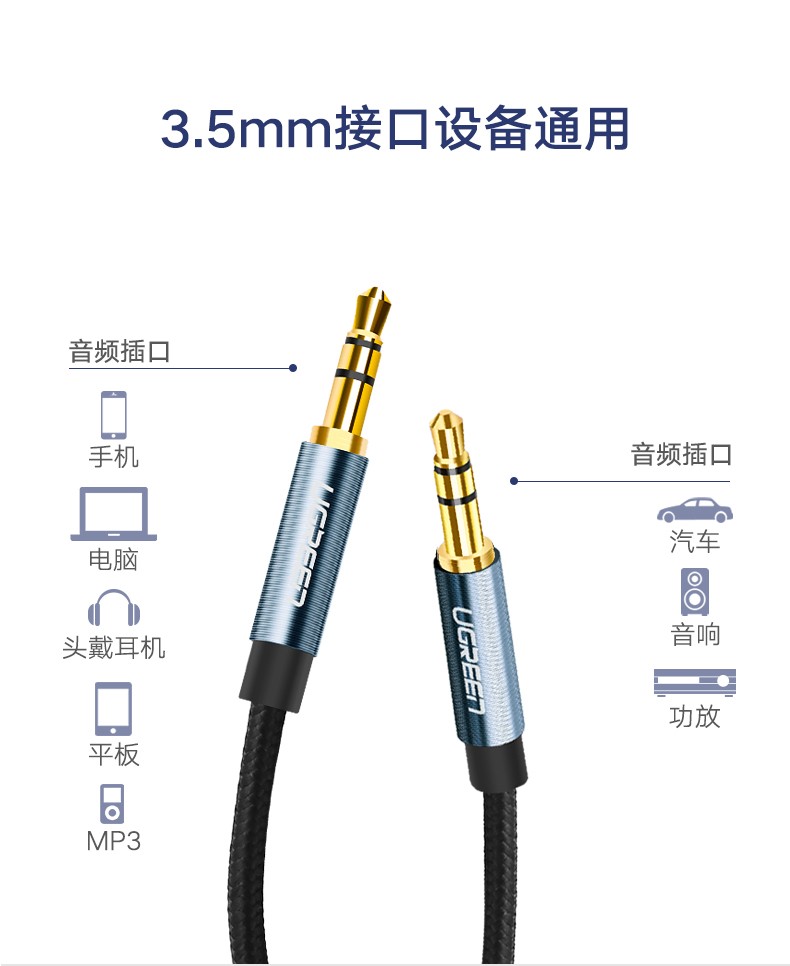 綠聯(lián) AV112 車載AUX音頻線 3.5mm 公對公車載耳機連接線 直對直 1.5米 藍色 單個裝