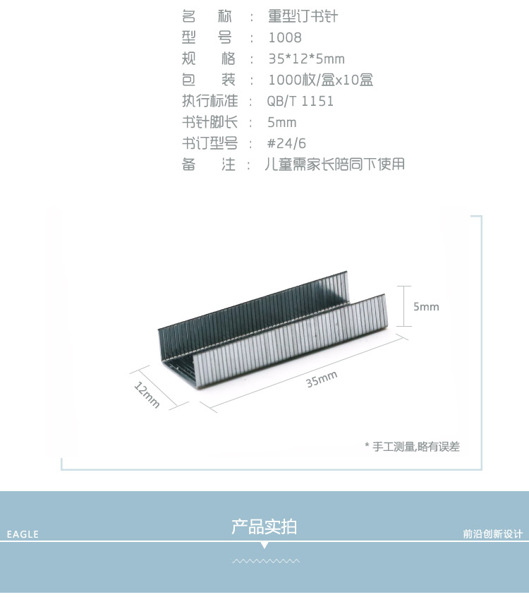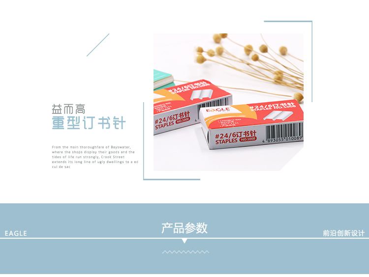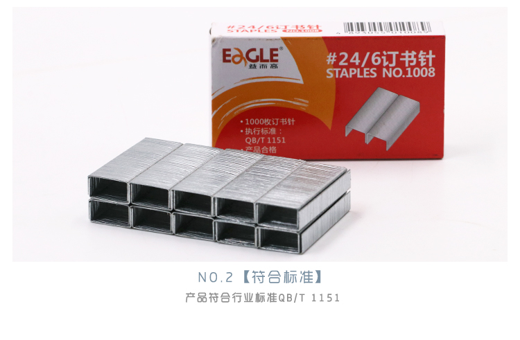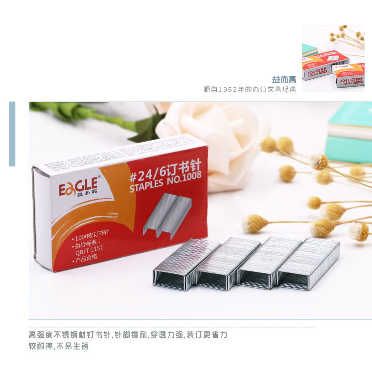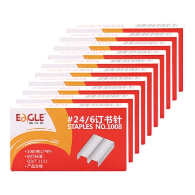 益而高(EaGLE)1008 12# 24/6通用型訂書(shū)針 高強(qiáng)度易穿透書(shū)釘加厚 1000枚/盒 10盒/包