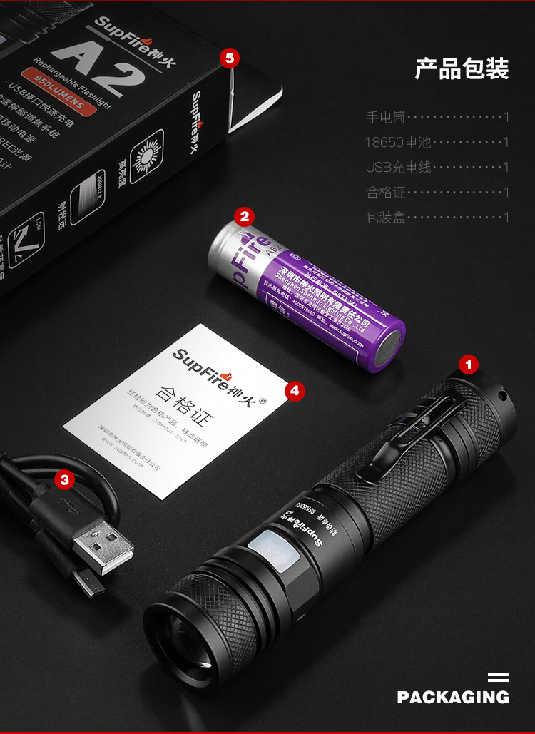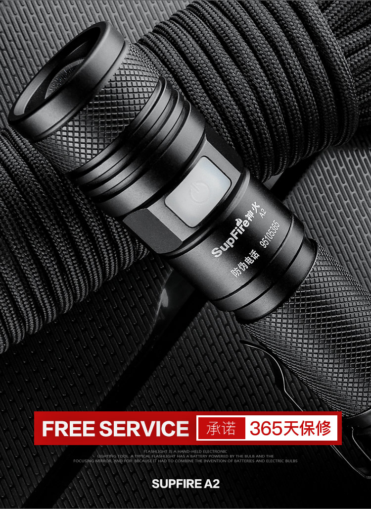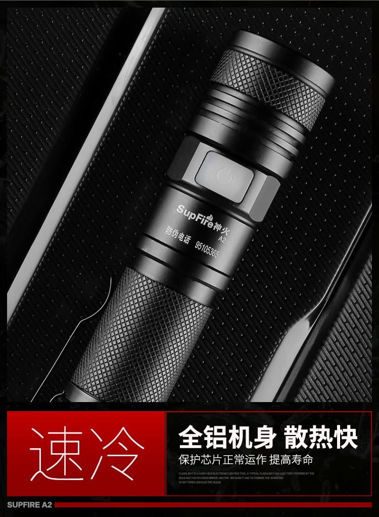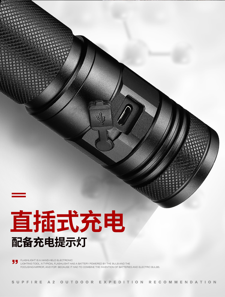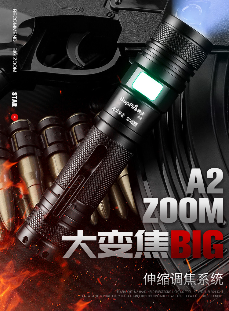 神火(supfire)A2升級版 強(qiáng)光手電筒可充電式LED遠(yuǎn)射型迷你變焦燈戶外家用10W