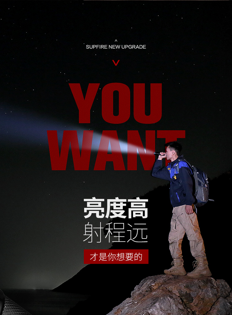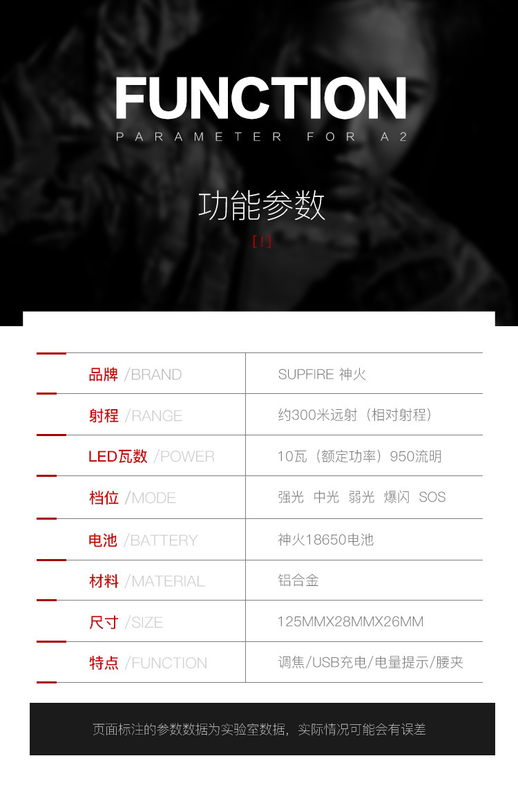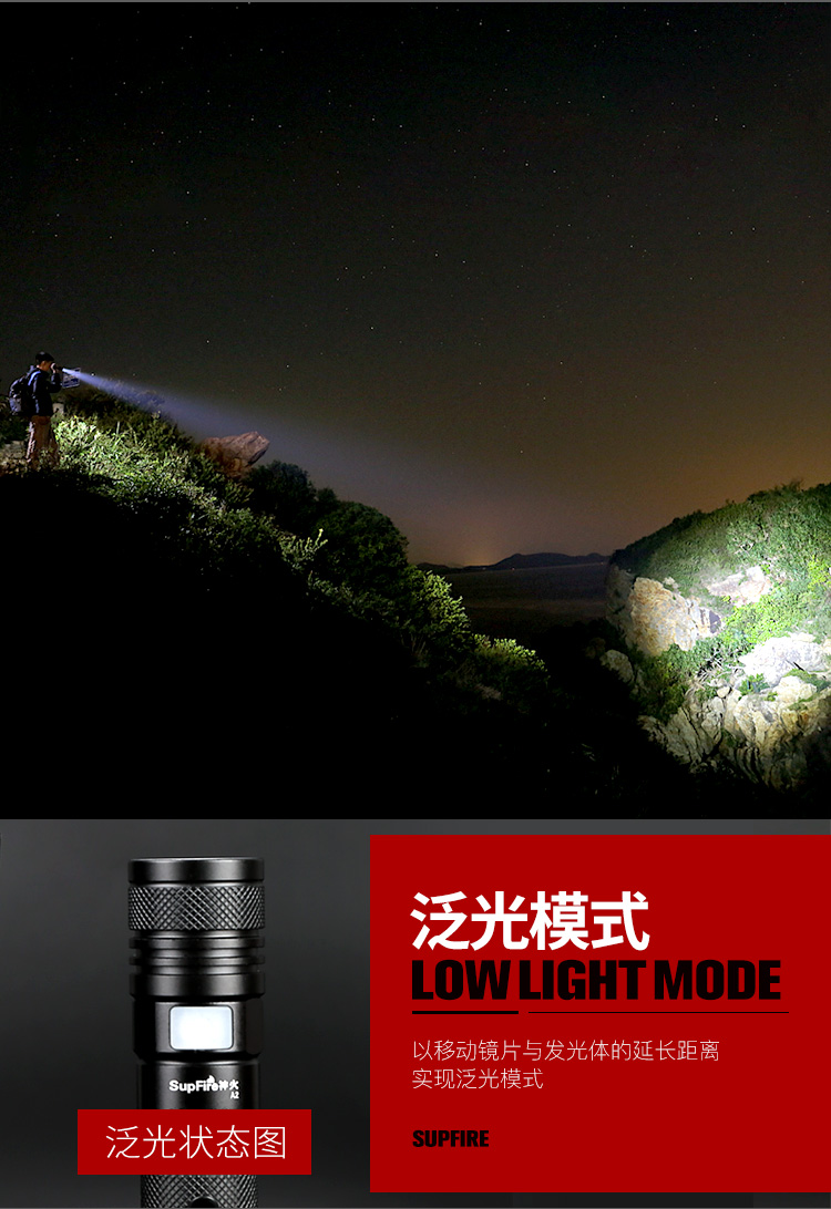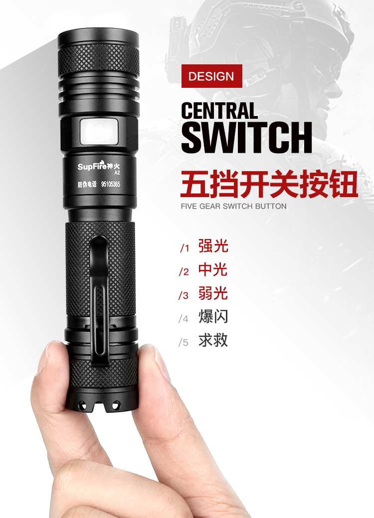 神火(supfire)A2升級版 強(qiáng)光手電筒可充電式LED遠(yuǎn)射型迷你變焦燈戶外家用10W