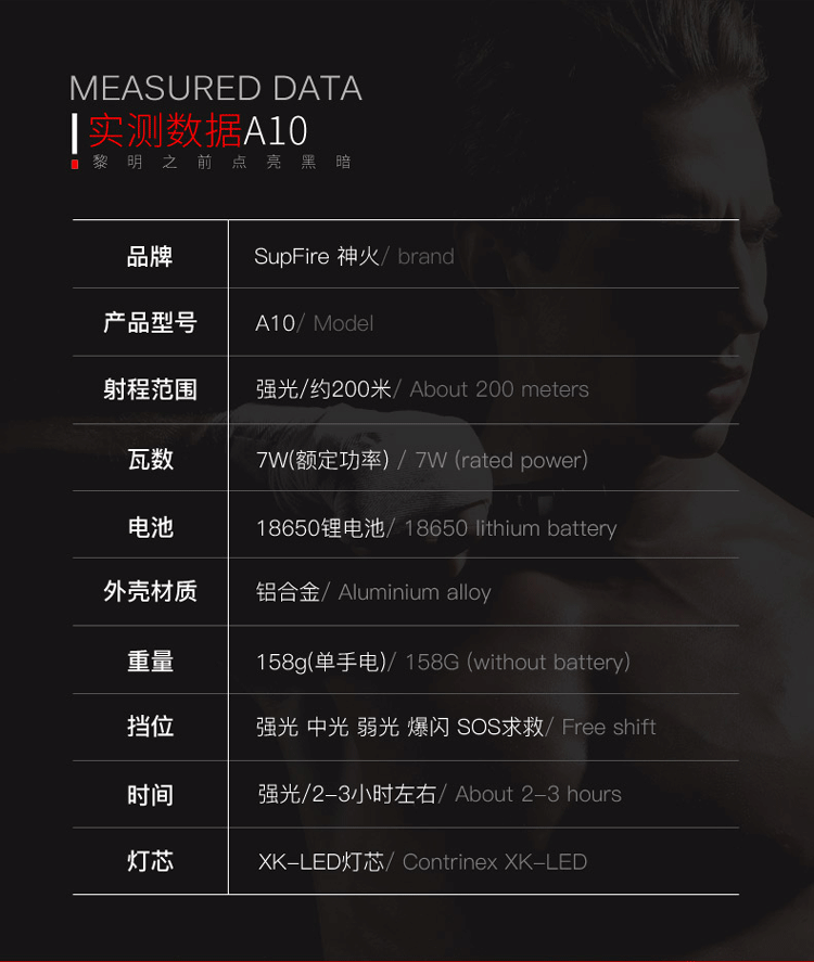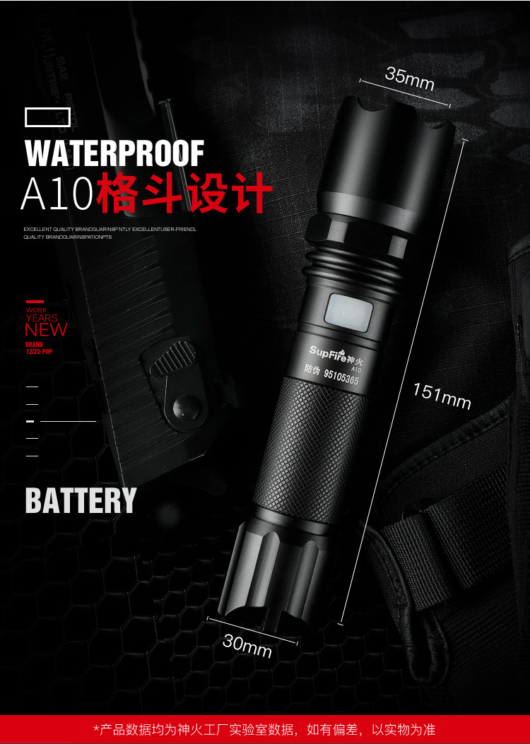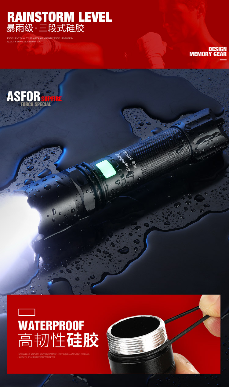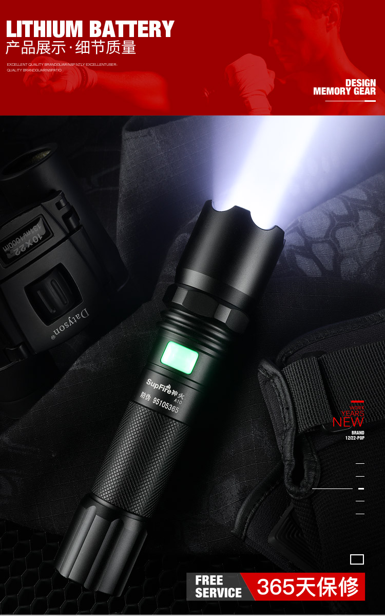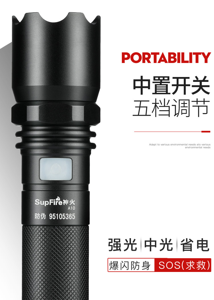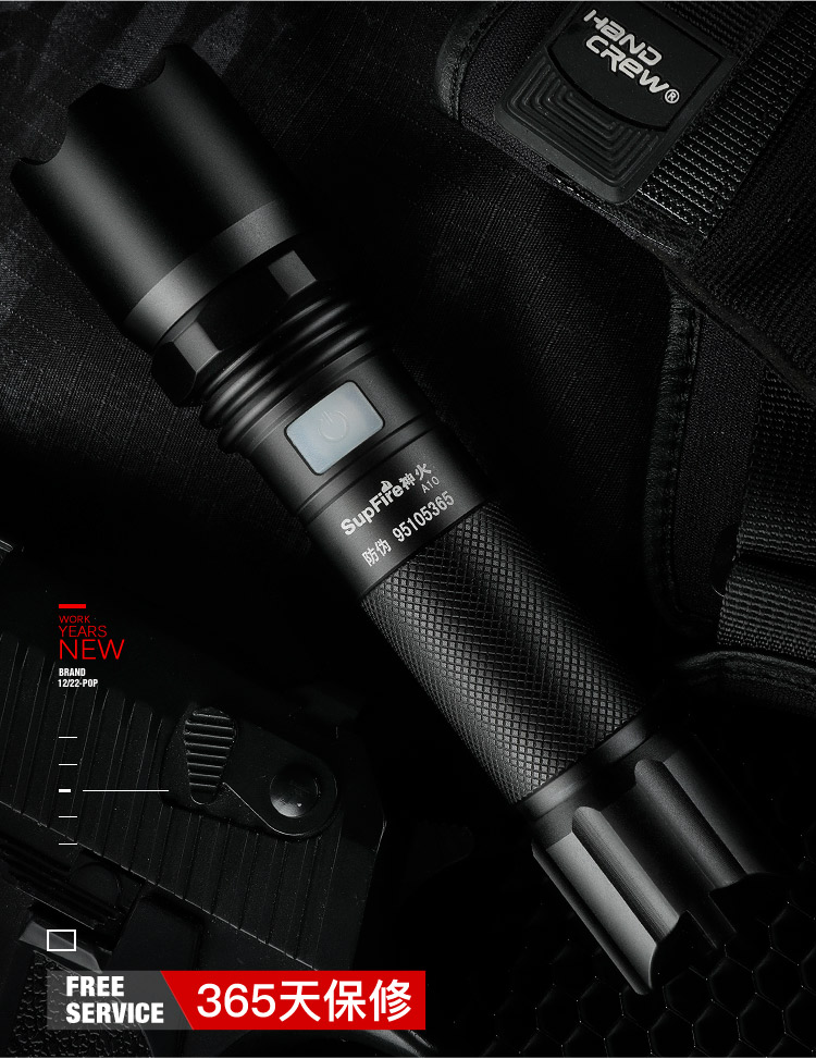 神火(supfire)A10強光手電筒LED遠射家用戶外騎行USB充電