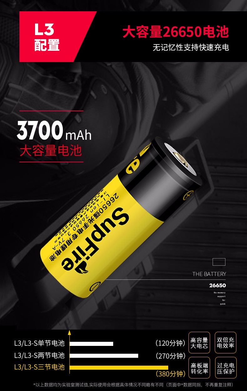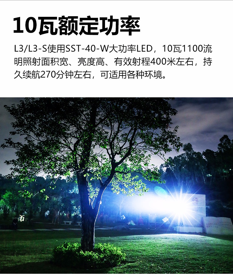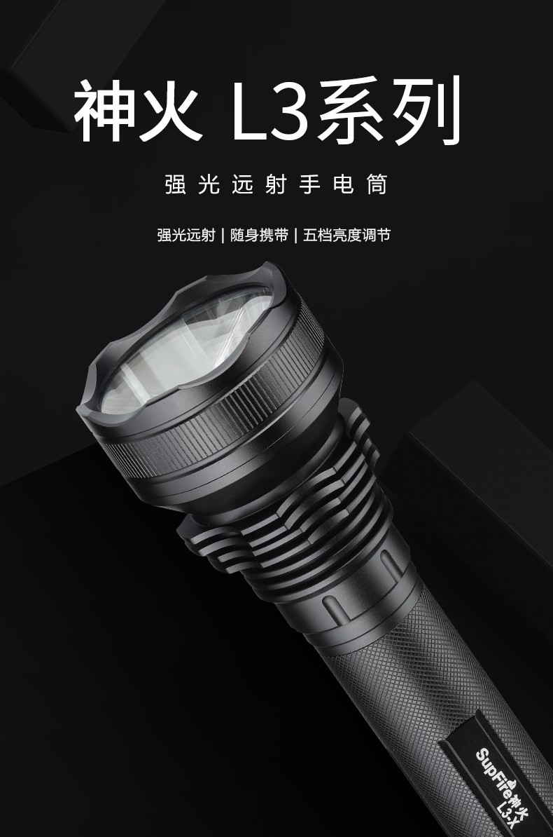 神火(SupFire)L3 強(qiáng)光防水遠(yuǎn)射LED手電筒充電26650長(zhǎng)款戶外探索遠(yuǎn)射 L3-U標(biāo)配