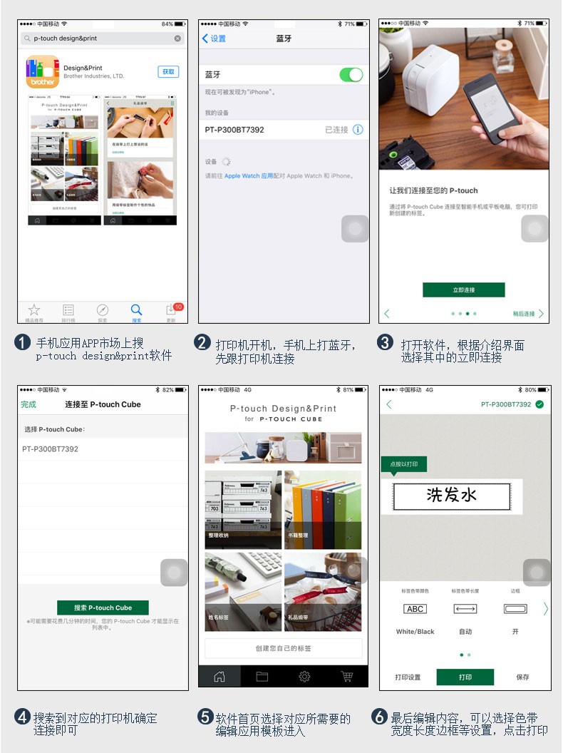 兄弟(brother)PT-P300BT 小白標(biāo)簽機(jī) 藍(lán)牙連接迷你便攜家用標(biāo)簽打印機(jī)條碼機(jī)緞帶打印機(jī)