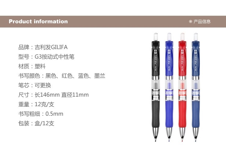 吉利發(fā) G3 按動中性筆 簽字筆 0.5mm/黑色/盒(12支)