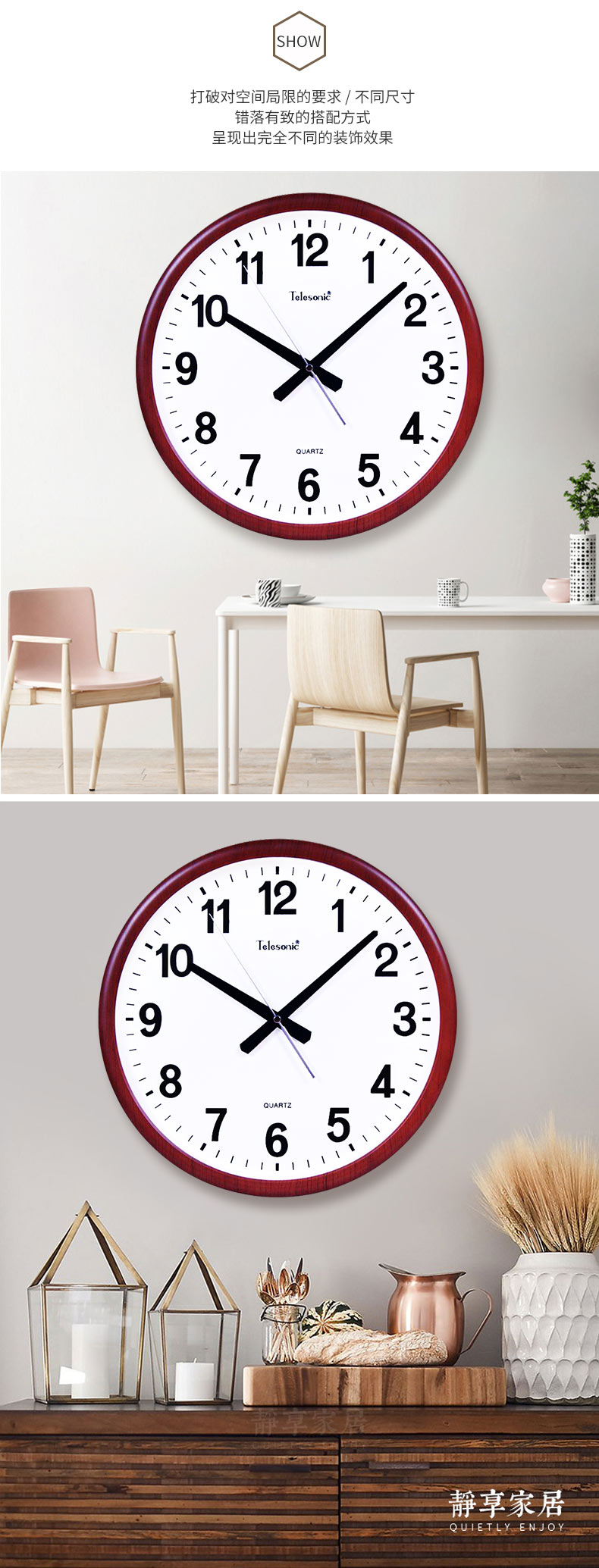 天王星時鐘客廳臥室靜音掛鐘創(chuàng)意時尚簡約石英鐘璧鐘表 332W