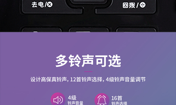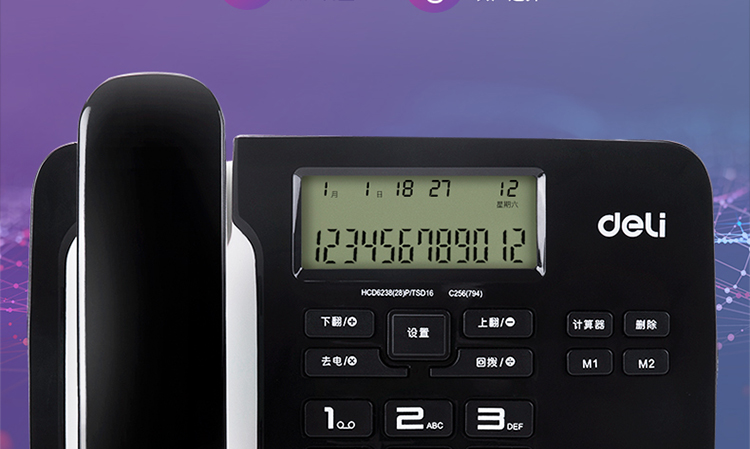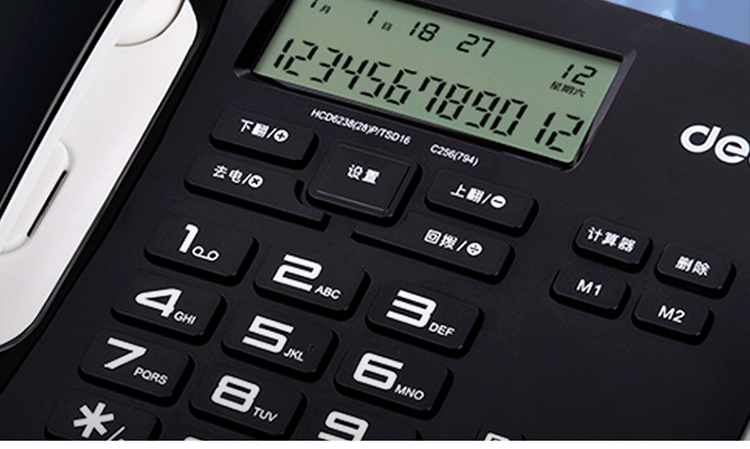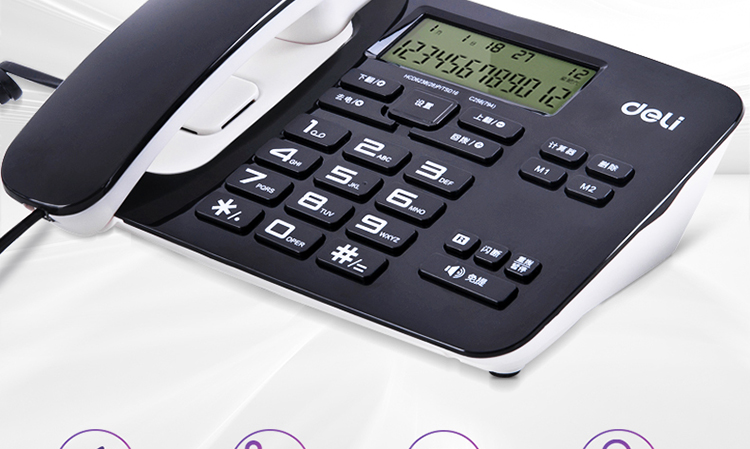 得力(deli) 794 電話機座機 固定電話 辦公家用 免電池 雙接口 黑色