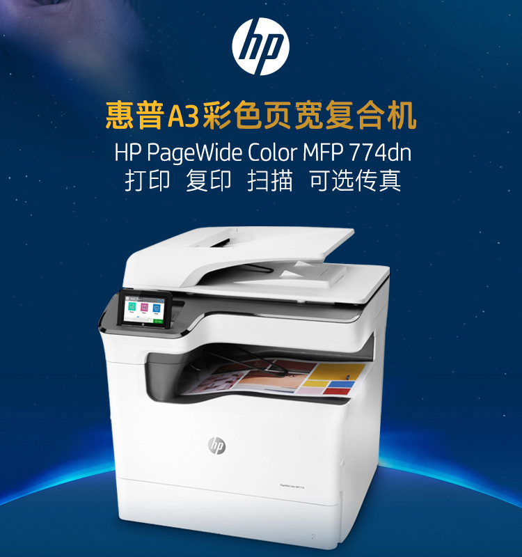 惠普 HP PageWide Color MFP 774dn A3彩色頁寬復(fù)合機 打印復(fù)印掃描傳真一體機