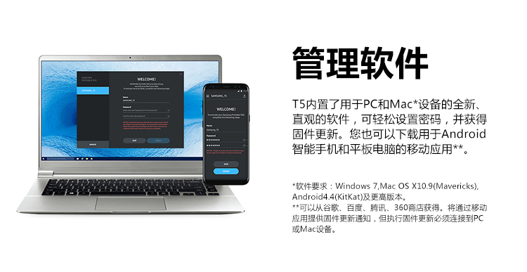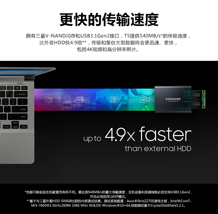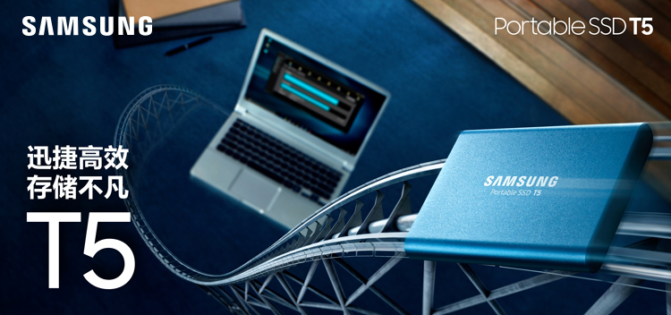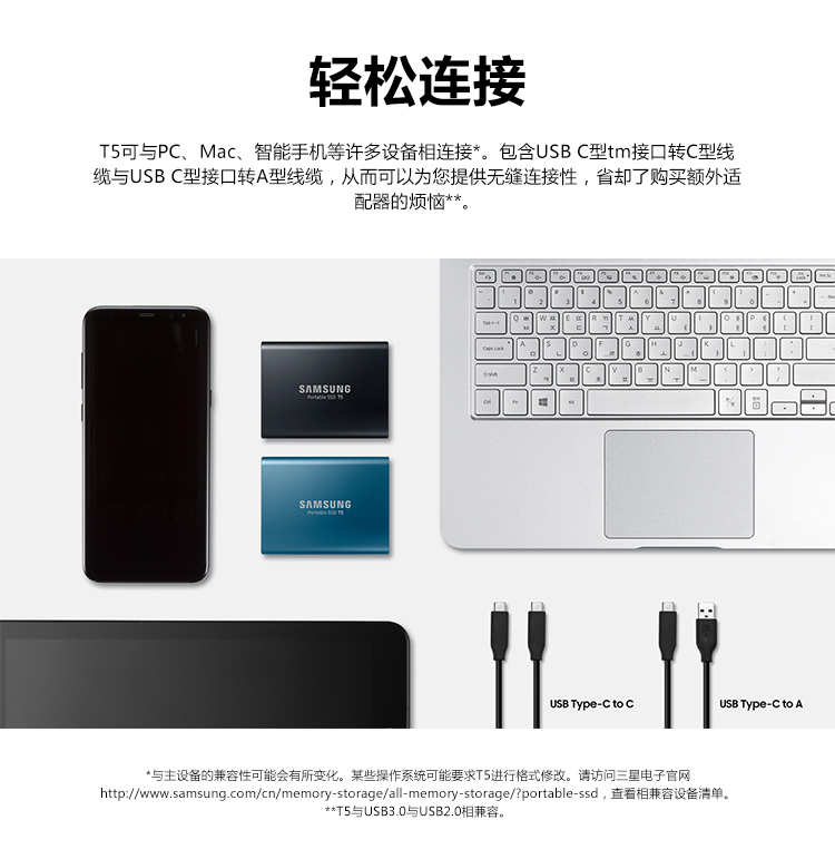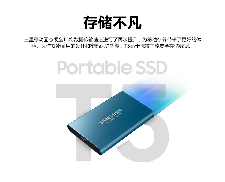 三星(SAMSUNG) 250GB Type-c USB3.1 移動硬盤 固態(tài)(PSSD)T5 珊瑚藍(lán) 傳輸速度可達(dá)540MB/s 安全便攜