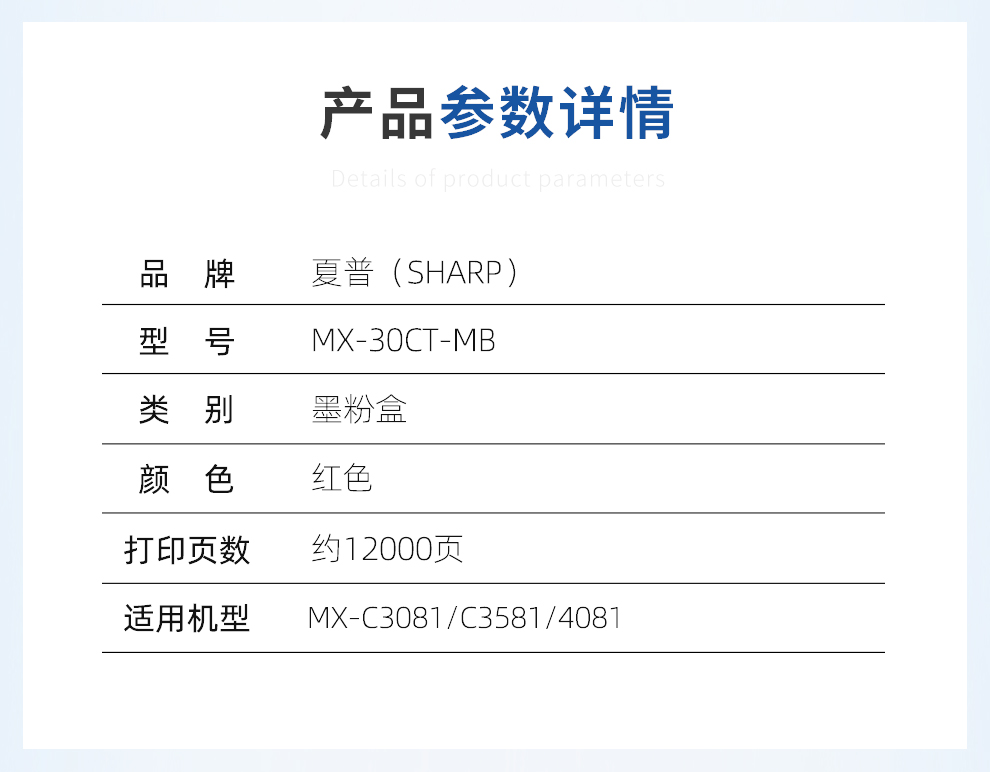 夏普粉盒 MX-30CT-MB 紅色粉盒 適用于MX-C3081/C3581/4081 單位:支