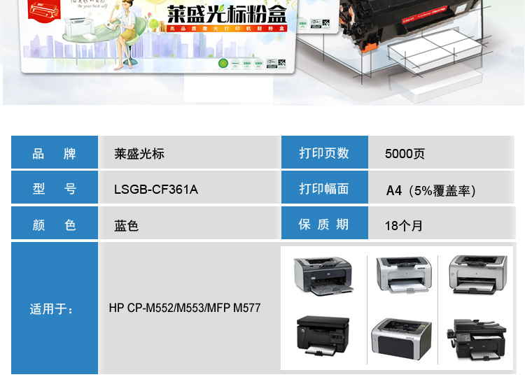 萊盛光標(biāo) LSGB-CF361A 青色粉盒 適用于HP CP-M552/M553/MFP M577