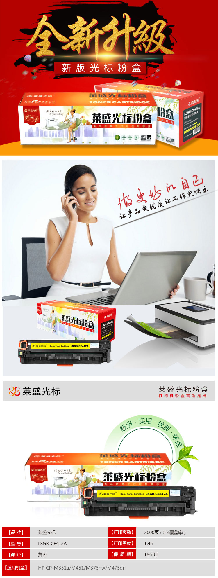 萊盛光標(biāo) LSGB-CE412A 黃色粉盒 適用 HP CP-M351a/M451/M375nw/M475dn