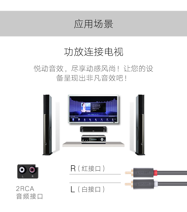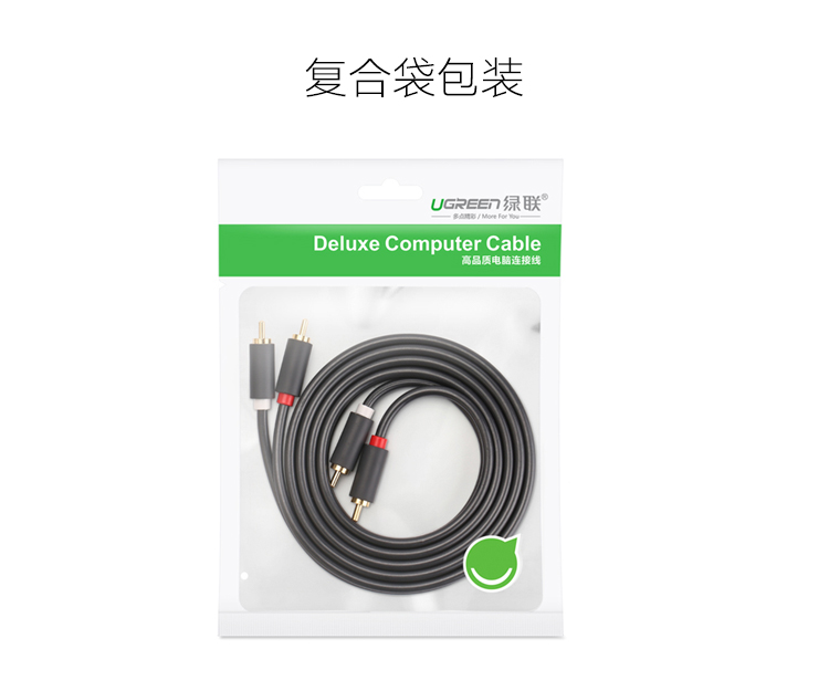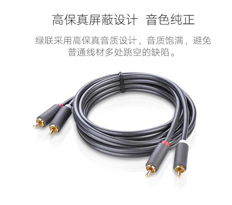 綠聯(lián) AV104 雙蓮花頭音頻線2RCA公對(duì)公 二對(duì)二紅白AV音頻信號(hào)線 DVD電腦電視接音響箱功放線 1米 黑色 單個(gè)裝