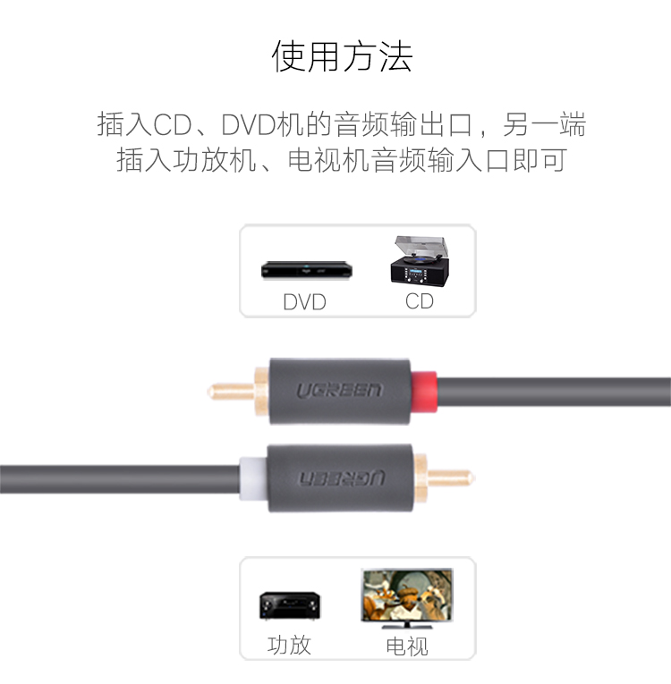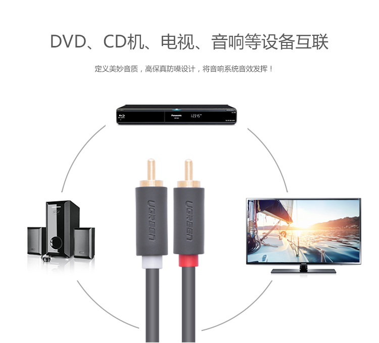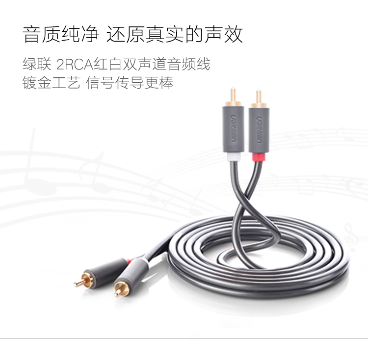 綠聯(lián) AV104 雙蓮花頭音頻線2RCA公對公 二對二紅白AV音頻信號線 DVD電腦電視接音響箱功放線 1.5米 黑色 單個裝
