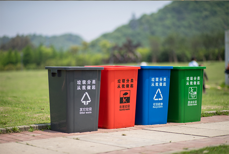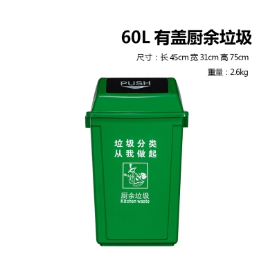 古達 60L搖蓋 綠色 廚余垃圾分類垃圾桶帶蓋 飯店餐飲可回收廚余環(huán)衛(wèi)有害戶外四分類 單個裝