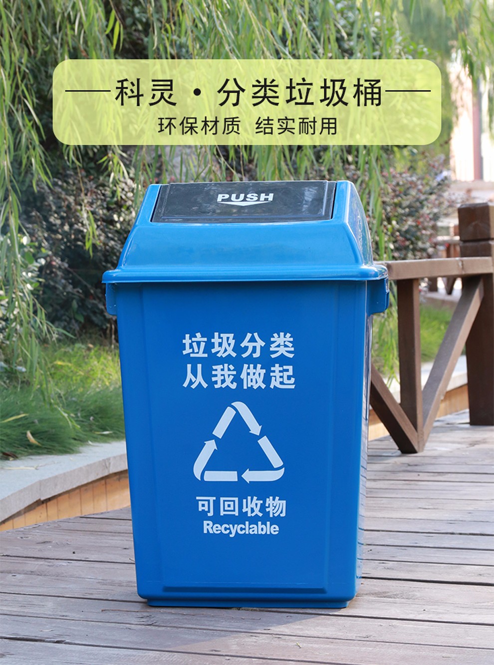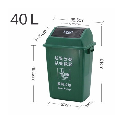 科靈 40L搖蓋 綠色 廚余垃圾分類(lèi)垃圾桶帶蓋 飯店餐飲可回收廚余環(huán)衛(wèi)有害戶外四分類(lèi) 單個(gè)裝