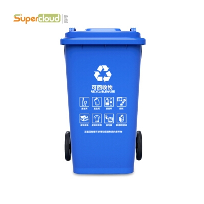 舒蔻 32L腳踩 藍(lán)色 可回收垃圾桶 物業(yè)環(huán)衛(wèi)垃圾分類商用帶蓋分類垃圾桶果皮箱 單個裝