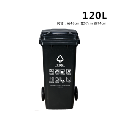 ABEPC 120L帶輪 黑色 干垃圾桶 物業(yè)環(huán)衛(wèi)垃圾分類商用帶蓋分類垃圾桶果皮箱 單個(gè)裝