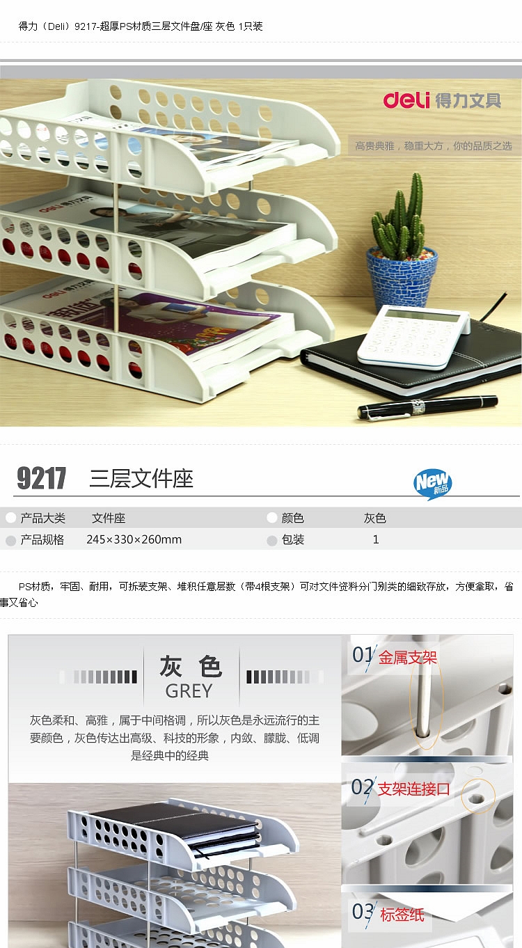 得力 9217 三層文件盤 文件籃 黑色 單個(gè)裝