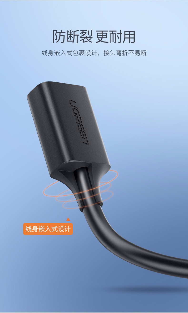 綠聯(lián) US129 USB3.0延長線公對(duì)母高速傳輸數(shù)據(jù)線 AM/AF 電腦U盤手機(jī)無線網(wǎng)卡鍵盤鼠標(biāo)接口加長連接線 1米 經(jīng)典款 黑色 單個(gè)裝