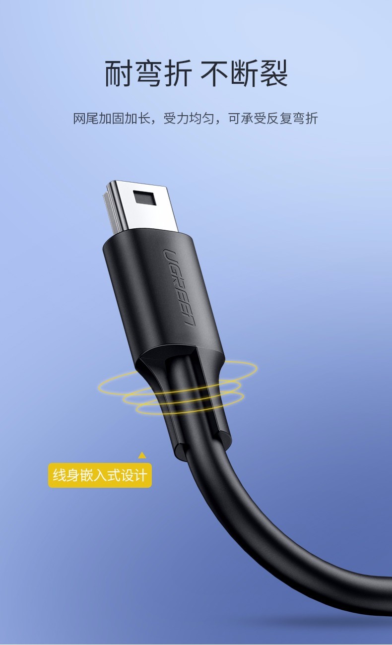 綠聯(lián) US132 USB2.0轉(zhuǎn)Mini USB數(shù)據(jù)線 老式移動(dòng)硬盤平板行車記錄儀數(shù)碼相機(jī)攝像機(jī)T型口充電連接線 1.5米 黑色 單個(gè)裝